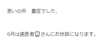 予想していた以上に重症だったようでしたが、仕方がないと本人も諦め、治療に専念していくようです。