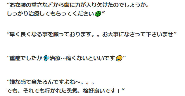 大事な歯がかけていたことで、ファンから心配のコメントが寄せられています。