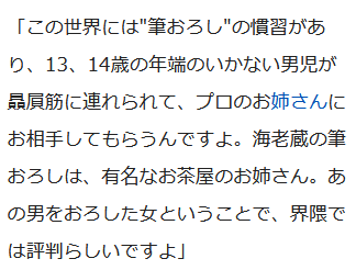 海老蔵さんに限ったことではなく歌舞伎役者の女遊びは度々報じられてきました。世間一般的に“経験”が早かったがために、色気の出方も格段違うことでしょうし、味を占めてしまったとすれば納得がいきますね。海老蔵さんの性豪伝説もある意味信憑性が高まります。