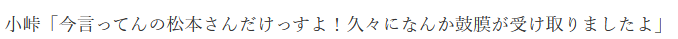 小峠さんにも素敵な女性が現れることを願っています。