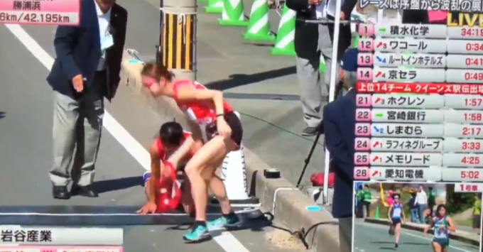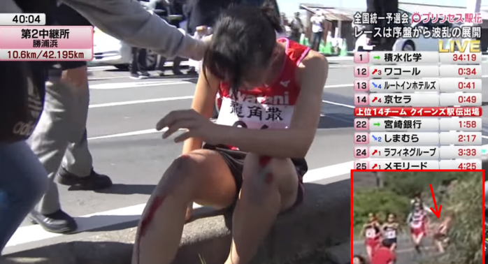 岩谷産業の飯田怜さんが転倒して骨折するというアクシデントがありました。飯田怜さんは走ることも歩くこともできず、膝を血だらけにしながら這って進み、次の選手にタスキを渡しました。映像で見ると、言葉を失う程の痛々しい姿・・・。(映像は記事の下にあります)これを巡って、業界やネット上では議論になっているようです。皆さんはどう考えますか?