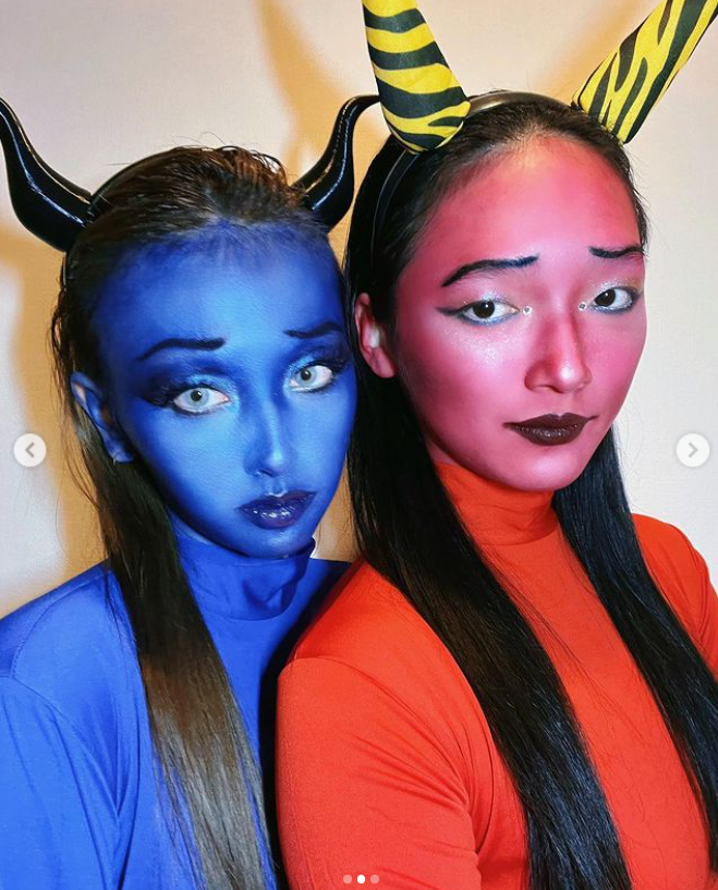 「今年は相方ができまして @saki_nakashima 2人分の鬼メイクをしました」と赤鬼姿になったモデル・中島沙希さんとの2ショットも披露しました。