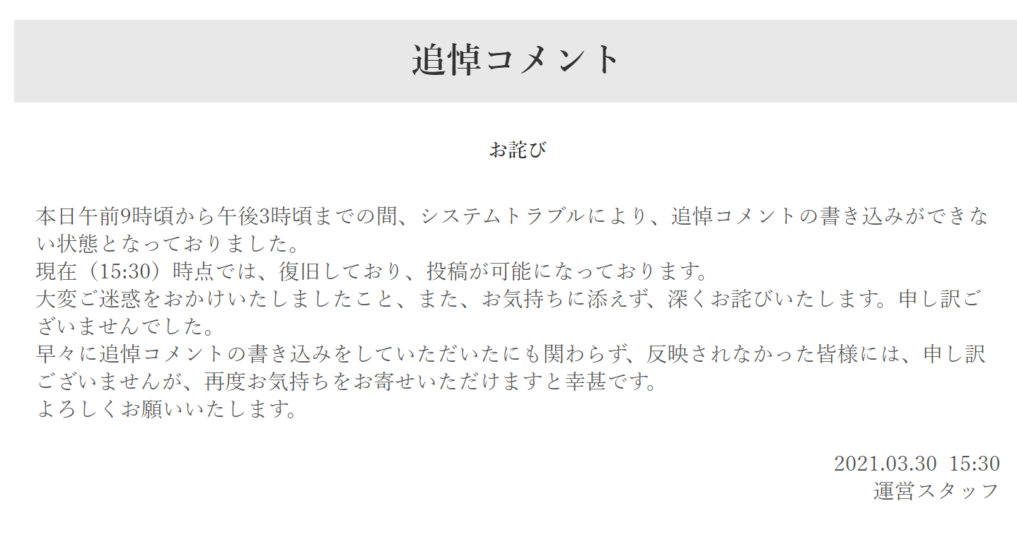 高木さんのオフィシャルサイトGALCHEFでは、元気に台所に立つ写真とともに、故人へのメッセージを募る「追悼コメント欄」を立ち上げたことも発表しました。