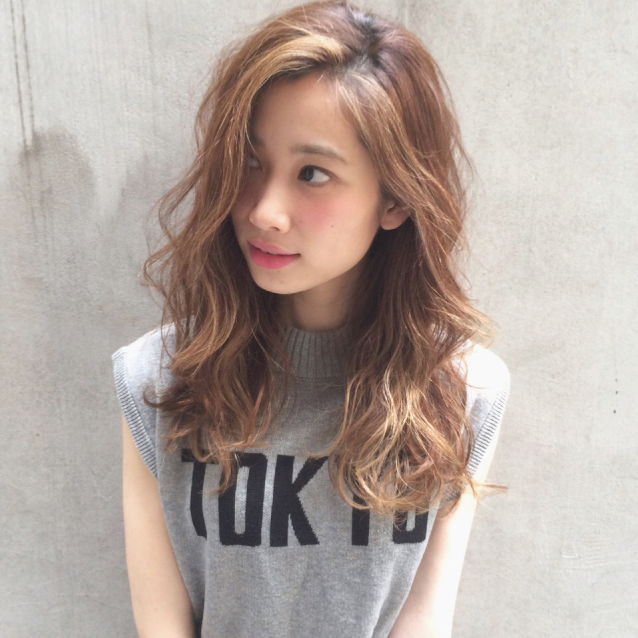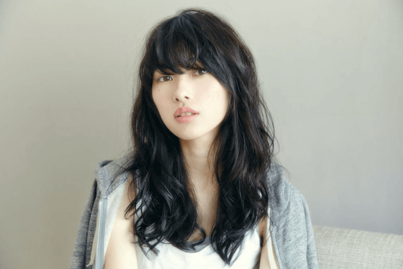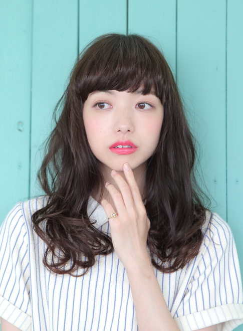 セミロングのパーマスタイルには前髪がポイント