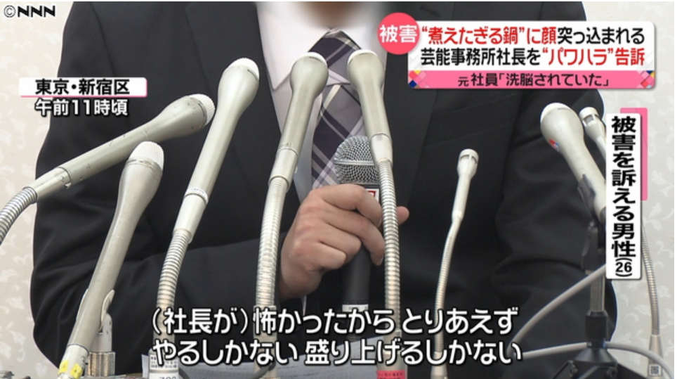 その男性によると、2015年12月、事務所の忘年会で元芸能プロ社長に首をつかまれて、火がついたままのしゃぶしゃぶ鍋の中に2回に渡って無理やり顔を突っ込まれたそうです。
