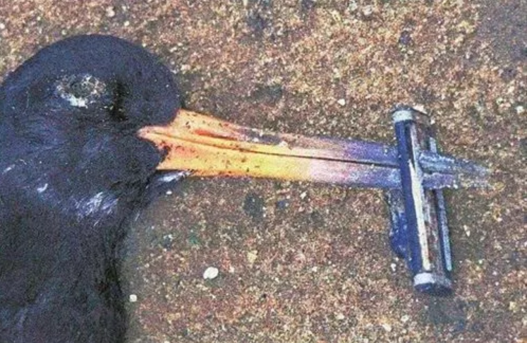 クチバシにカミソリが挟まってエサを食べられずに死んだ鳥