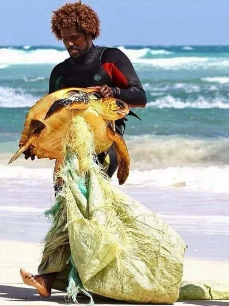 これらの魚網にからまった動物たちは自ら解くことができないので、身動きが出来なくなって、命を取られてしまいます…