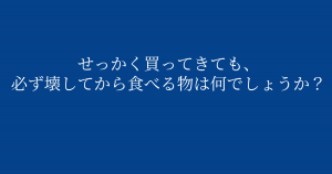 「せっかく買ってきても、必ず壊してから食べる物は何でしょうか?」普通に考えればわかる問題! 今回ご紹介するのは脳トレクイズです。 問題 :せっかく買ってきても、必ず壊してから食べる物は何でしょうか? Google ADVERTISEMENT Google あなたはわかりましたか? それでは答え合わせに行きましょう! Google 答えは、、、「卵」 ADVERTISEMENT 「卵」は殻に守られているため、食べる前には必ず殻を壊す必要があります。 Google あなたは間違えずに解けたでしょうか! ADVERTISEMENT Google [著作権者VONVON /無断コピー、無断転載および再配布禁止(違反時の法的措置)