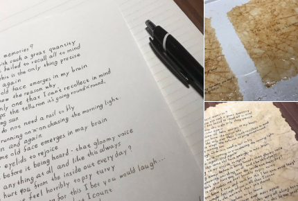 3.コピー用紙に紅茶を塗って…