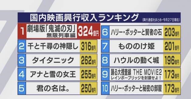 投稿には「あけおめ」と一言つづり、「去年はこいつの年 なんせ 千と千尋の神隠し越えてんだもん」と、ハッシュタグで公開から73日目の昨年12月28日に「劇場版 鬼滅の刃 無限列車編」が日本の歴代興行収入の新記録を樹立したことにも触れていました。
