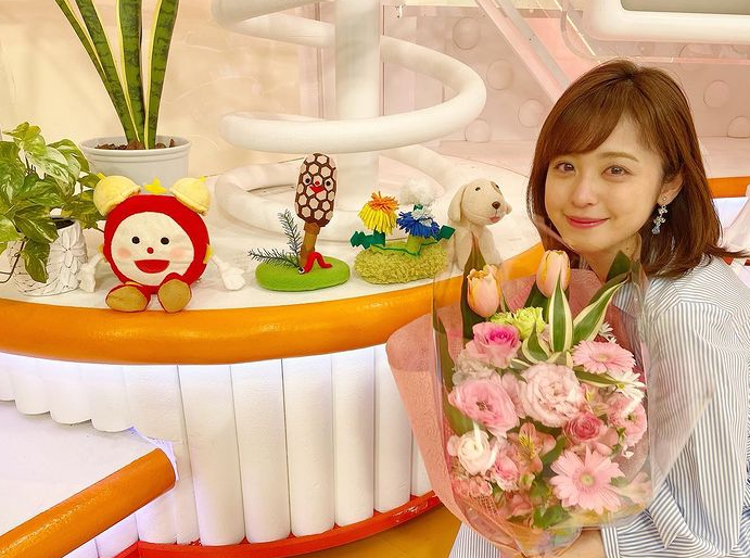 泣きすぎて目を赤く腫らし、花束を持った「めざましテレビ」スタジオでのショットを公開しました。