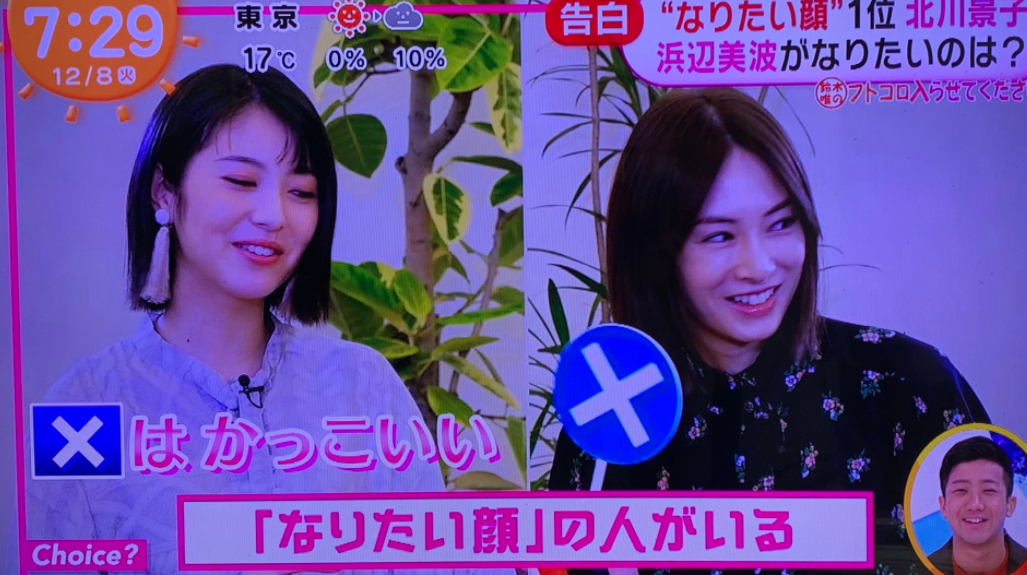 この日、同番組では18日より公開予定の映画「約束のネバーランド」で共演する北川さんと浜辺さんがVTRで登場。2人が様々な質問に対して、マルかバツで答えていくコーナーが企画され、その中で「なりたい顔の人はいる?」と憧れの容姿に関する質問がありました。