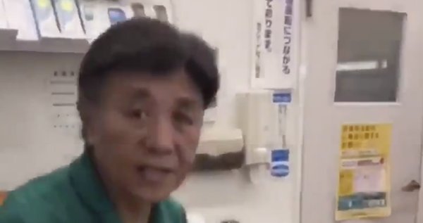 友人から送られてきた某コンビニ店のオーナーの動画が割とマジで狂ってるw w w w w ……ずっとヨダレ垂らしながら卑猥な言葉叫んだり、突然胸触ろうとして来て、避けたら走って追いかけてきてらしい? pic.twitter.com/j1IqWfjefq