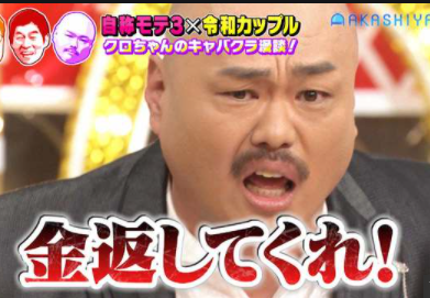 ウケが悪いので1時間で退店したところ、料金が高いと感じ不審に思ったクロちゃんは、内訳を見てみると「(アイスの)持ち込み料金で3000円取られてるんですよ」と明かし、スタジオを沸かせていました。