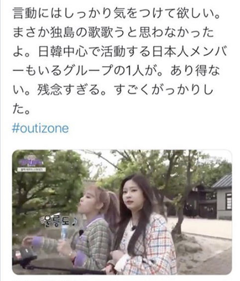 日韓合同ユニット・IZ*ONEのメンバーのイェナが、韓国の番組内で「独島は我が領土」を歌ったことが 物議を醸しているというのですが…。