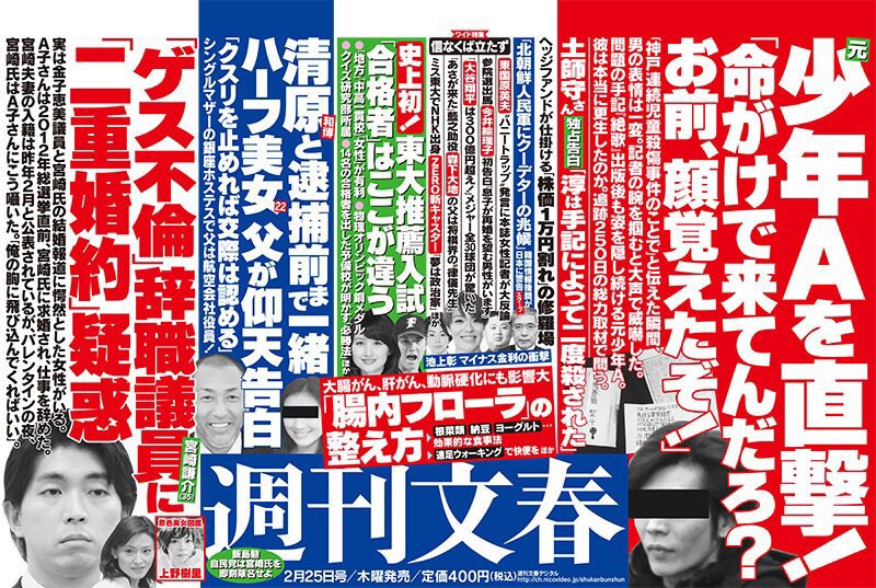 2015年に発売された「週刊ポスト」でこれまで公開されなかった酒鬼薔薇聖斗の本名や顔写真が公開されました。