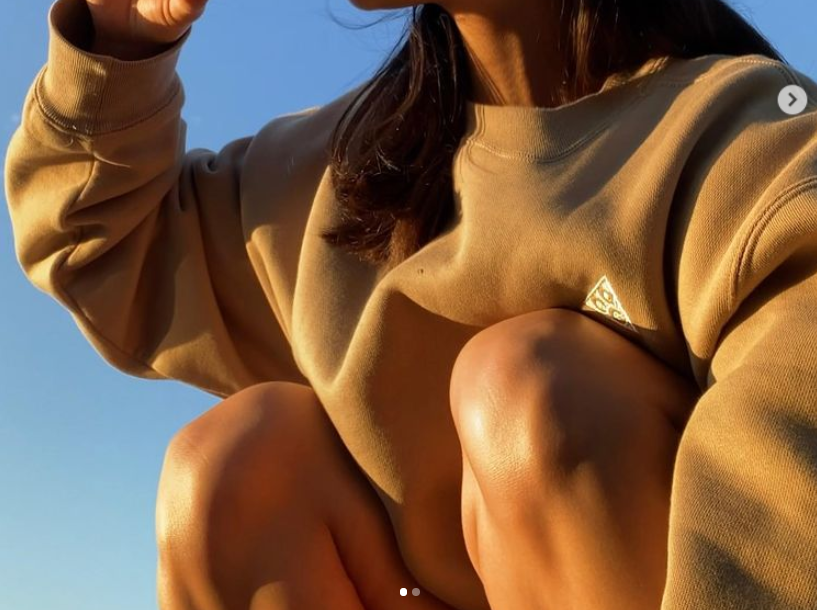 キャップとをかぶり、トレーナー姿の高梨さんは、太陽の光を浴びながら飲み物を飲む写真を投稿しました。