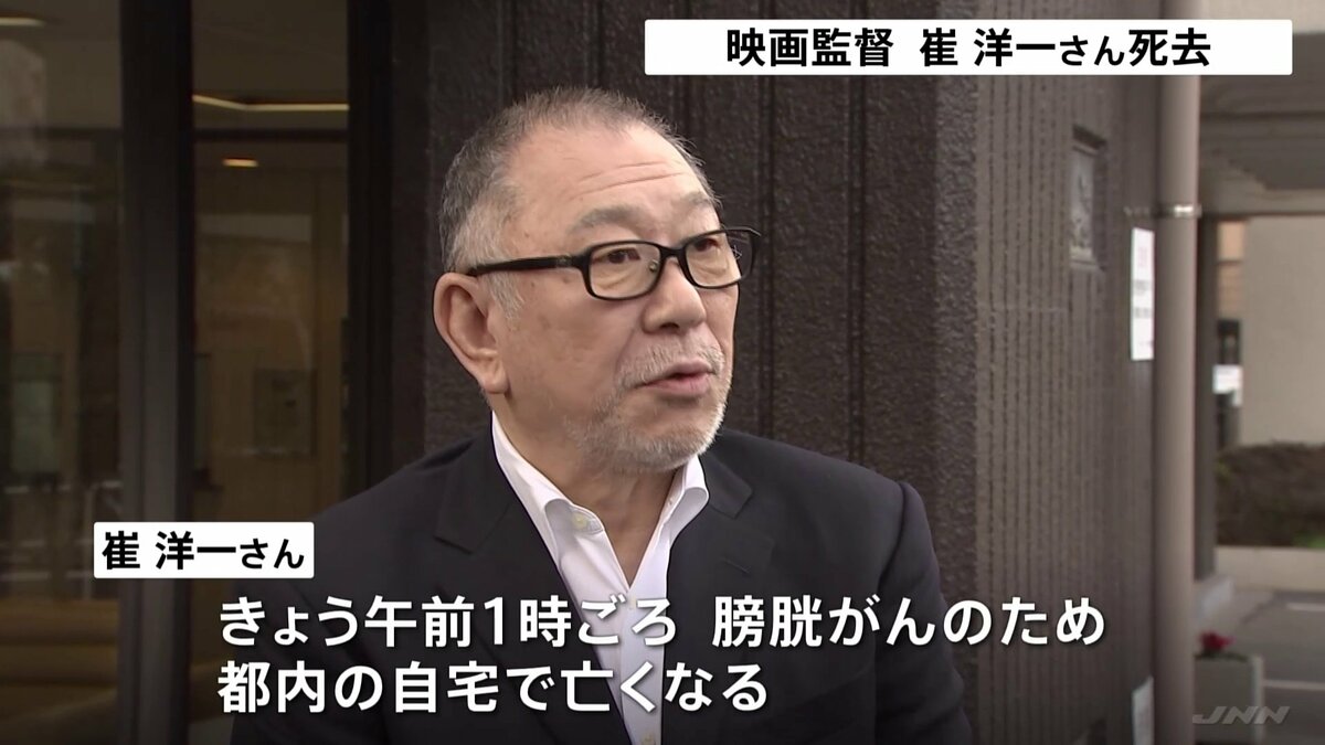 今年6月まで日本映画監督協会の理事長を務めた崔洋一(さい・よういち)監督が11月27日午前1時、ぼうこうがんのため東京都内の自宅で亡くなりました。73歳の生涯でした。