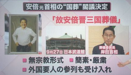 安倍元首相の国葬実施について反対意見が日々強まる中
