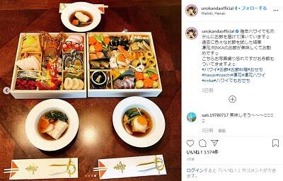 その写真には、さすが神田さんという豪華なおせちとお雑煮もしっかり写っており、ハワイでのお正月でも、しっかりと日本流の正月の過ごし方を堪能していることがわかる素敵なお写真でした。海外だとなかなか手に入らないのではと思いますが、そこはさすが神田さん。手に入るんですね!
