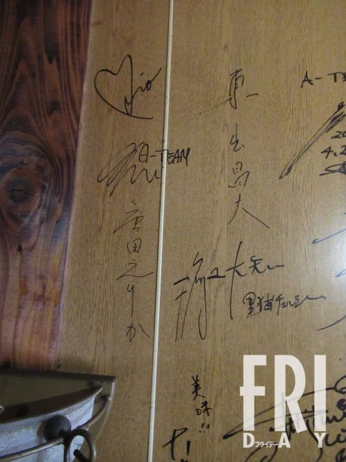 とコメントを残しており、またこのお店には、15年の開店以来、仲本さんと親交のある著名人も数多く店を訪れていたという。カウンターの向かい側の壁には、客が書いたサインが所せましと並んでおり、そのサインの中には30cmほどに大きく書かれたサインが一際と目立っています。