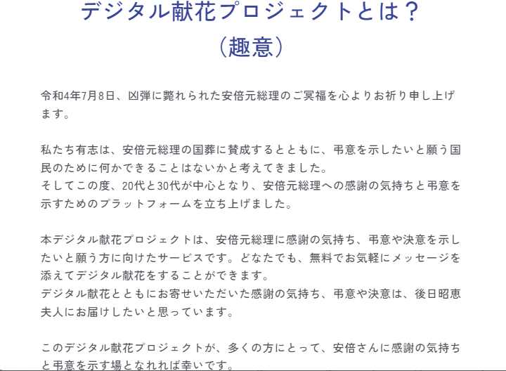 安倍元総理への感謝の気持ちと弔意を示すためのプラットフォームを、20代と30代が中心となり立ち上げた【デジタル献花】をご存知でしょうか?そこにはすでにたくさんの献花が寄せられています。しかし、このような場に相応しくないメッセージも見られることから、人々からは悲しみの声が聞こえています。
