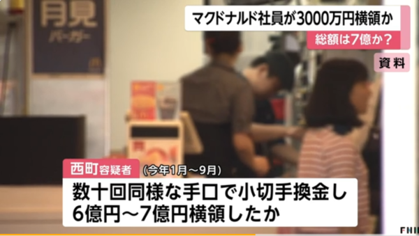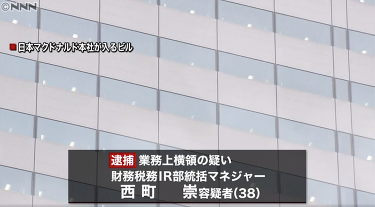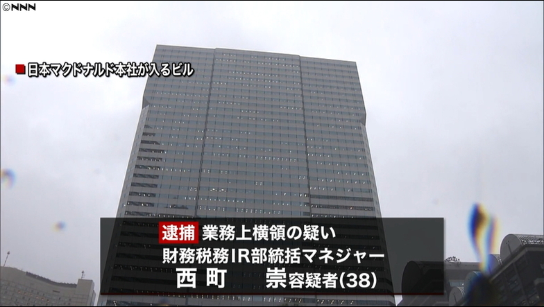 昨年7月に西町容疑者にマクドナルドに入社し、財務部門の統括マネジャーとして、小切手の作成や取引先への送金を担当していました。そこで、逮捕容疑は10月4日、同社の口座から小切手を振り出して換金し現金3千万円を自分の口座に入れて横領した疑いが持たれているのです。