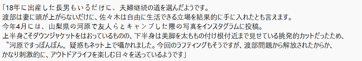 しかし今年2月に渡部がようやく活動再開し、佐々木も「これからはゼロから頑張る主人の姿を見守ることに」とコメントし、それ以来はSNSで元気な姿を見せています。