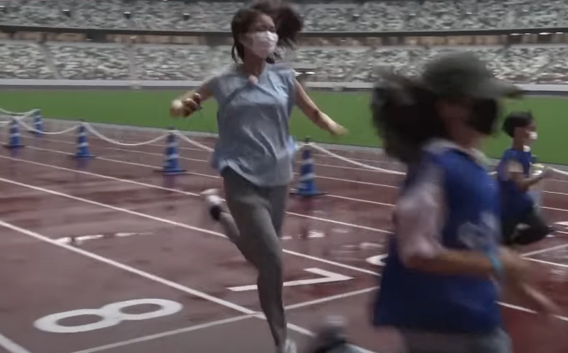 さらにはバ◯トも大人しくなかったのです。最後に訪れた国立競技場では、子供たちと一緒にトラックで競争を始めました。井上は全力で走るのですが、推定Dカップのバ◯トを上下に揺らしていたのです。