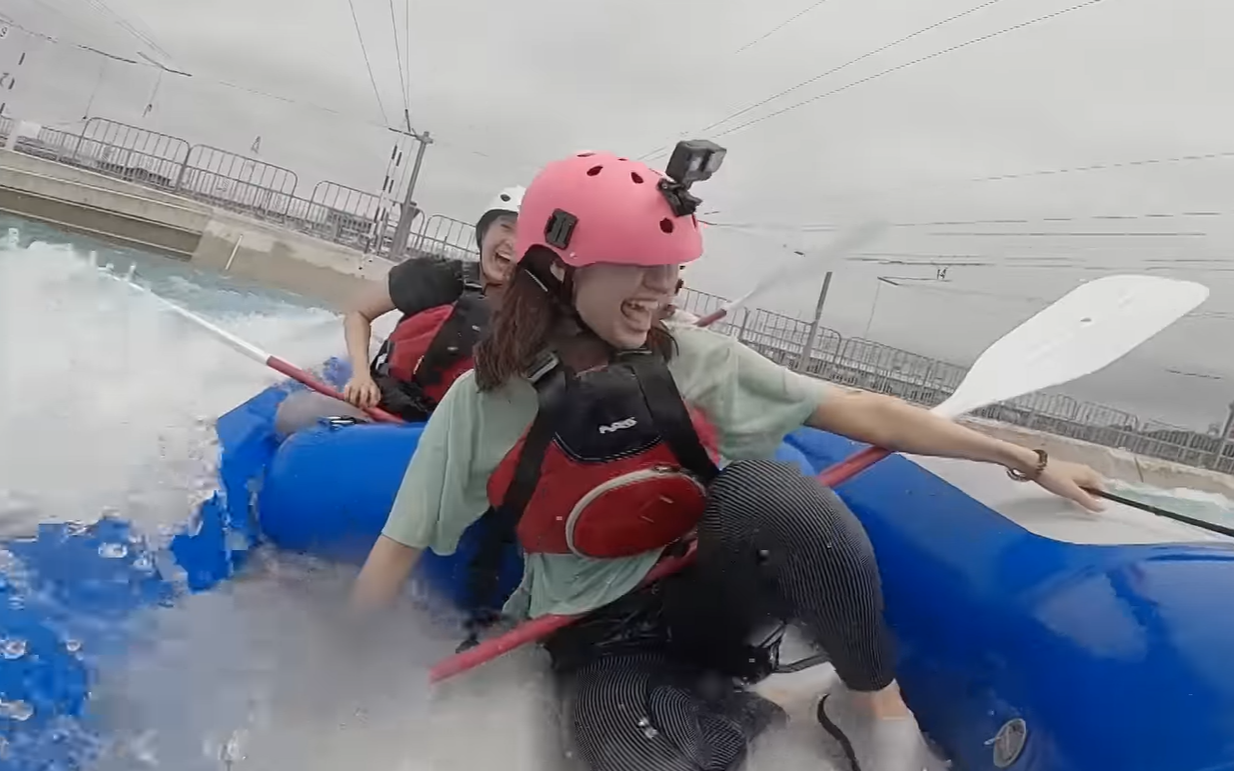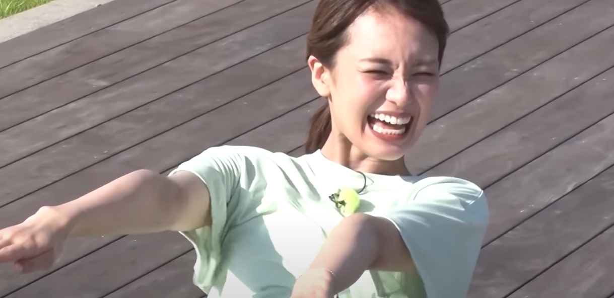 序盤で訪れた葛西臨海公園近くのカヌー・スラロームセンターでは、ウォーターボールに挑戦しました。透明のボールに入り水上で立とうとしたとき、バランスを崩し何度も転び大股開きを披露していたのです。さらに激流を下るラフティングにも挑戦していたのですが、押し寄せる波に耐え切れずボートの中で転倒を繰り返していたのです。ここではビショ濡れになりながらM字開脚をする井上が見られるという、歴史に残るサービス放送となりました。