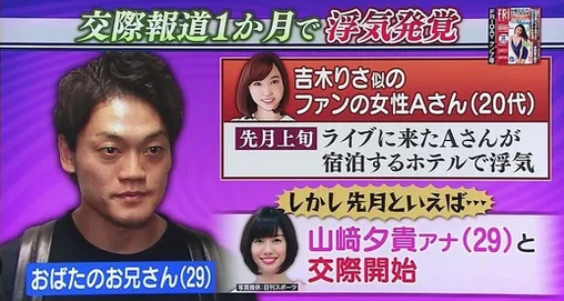 おばたのお兄さんは浮気を素直に認めて山崎アナに土下座をしたとも言われています。