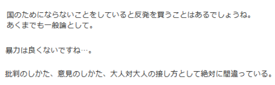 一緒に活動していた2人の秘書も肩を押されるなど被害を受けた模様です。