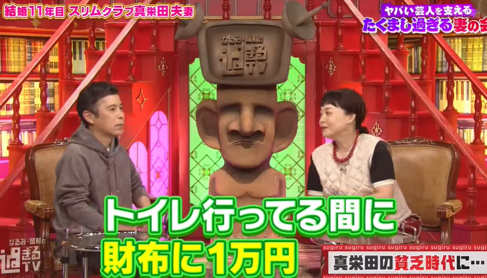 10月11日放送の「なるみ・岡村の過ぎるTV」(ABCテレビ)にお笑いコンビ・スリムクラブの真栄田賢さんが妻・有紗さんとともに出演。番組内で真栄田さんの最低な行為を暴露され、視聴者から批判の声があがっています!