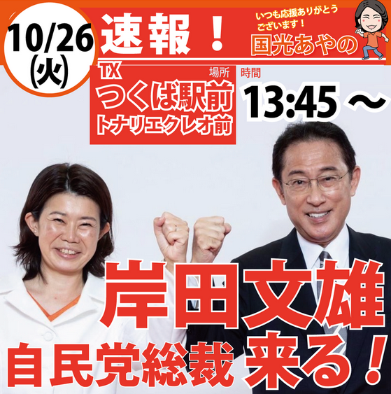 茨城6区から衆院選に立候補した自民党の国光文乃衆院議員の応援演説を行ったのです!首相自ら応援に駆け付けるとは、気合の入れようを感じさせます。