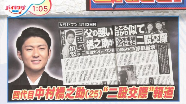 歌舞伎俳優・中村芝翫(55)氏と三田寛子(55)さんの長男で“歌舞伎界のプリンス”中村橋之助(25)さんと「乃木坂46」元メンバー・能條愛未(26)さんの熱愛が 8日発売の週刊誌「女性セブン」で発覚したというのですが…。