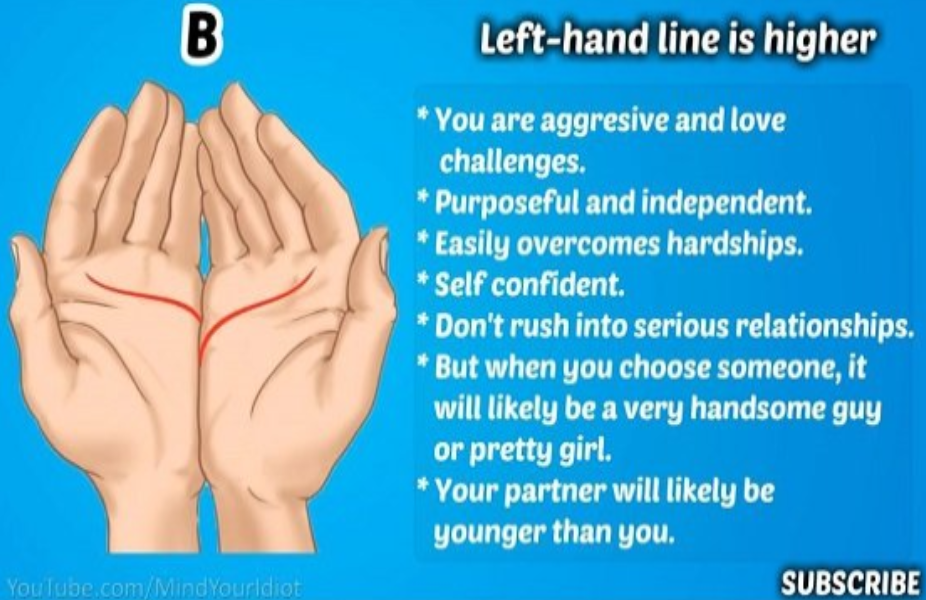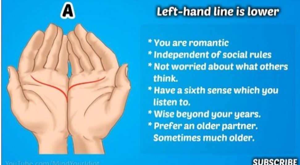 写真:YouTubeこの線を持つ人は、ロマンチックで円熟した魂を持っている。ずっと年上の人と結婚する可能性が高く、また年齢が上の人から好かれる傾向にある。そして、社会の常識にとらわれず、他人の意見を気にしない。さらには第六感や、実際の年齢より成熟した賢さまで併せ持つ。個性を持った人間を好み、遠回しな真実の伝え方はしない。