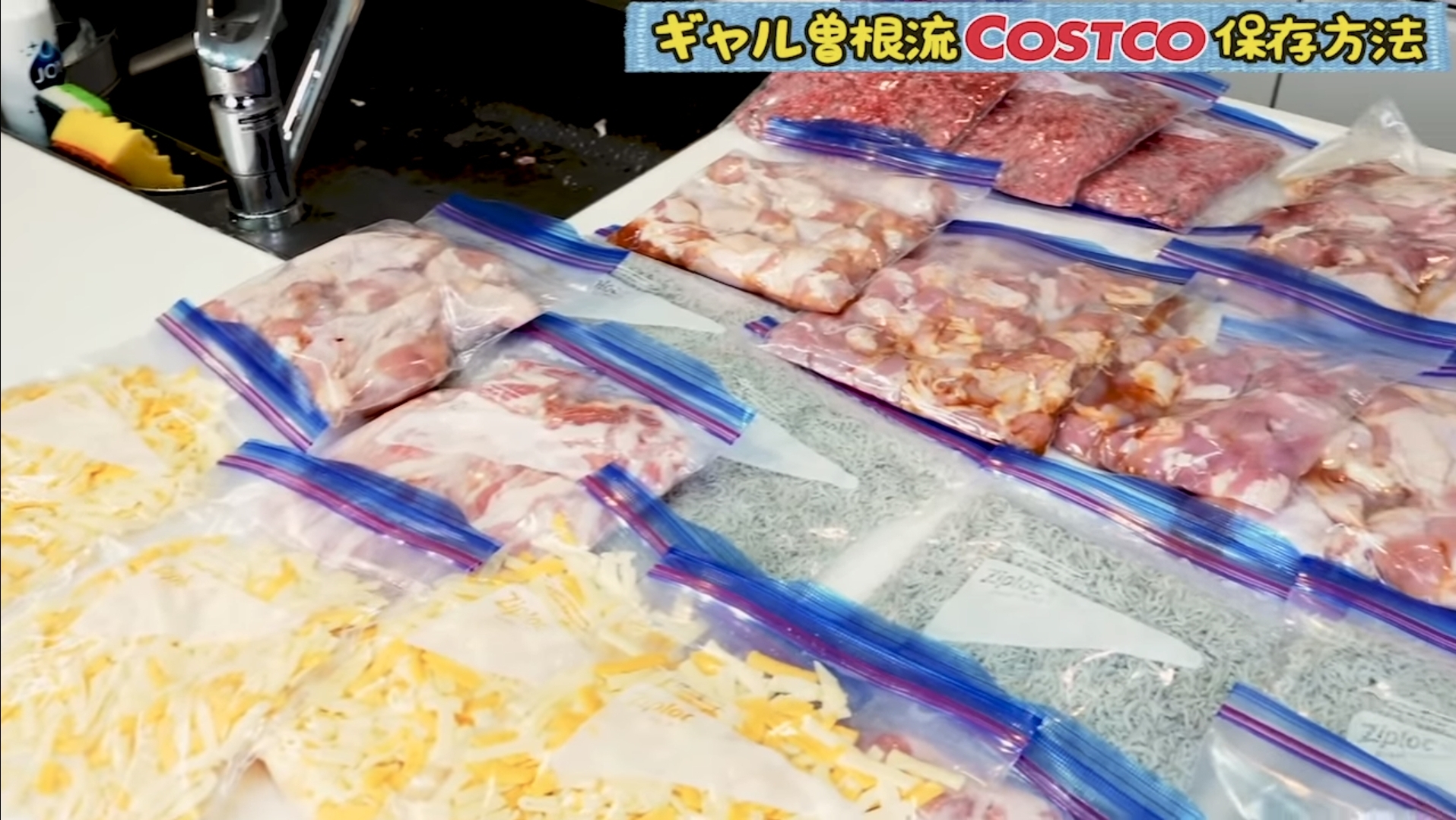 この動画は9か月前にアップロードされたもので、コストコで大量買いした生鮮食品をジップロックで小分けして保存する方法を紹介していました。日頃からやっている事なのか、かなり慣れた手付きで綺麗に小分けしていくギャル曾根。