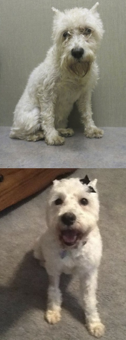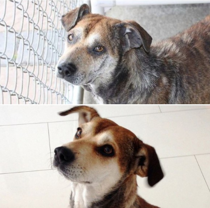 暖かい人間に救われた犬たちの瞳から輝きを放つ写真でした。