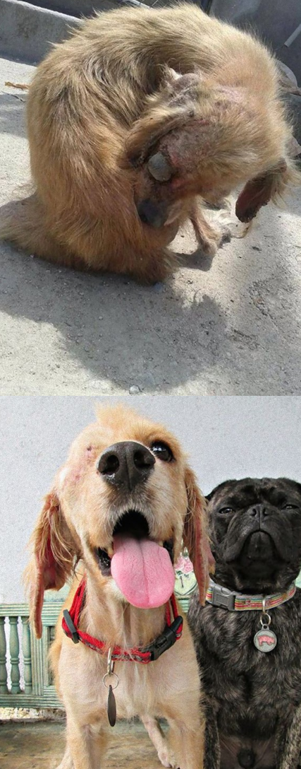 そんな犬たち、心優しき目撃者たちによって、あるいは、地元の動物保護団体の人たちによって救出されて、様々な手当が行われています。