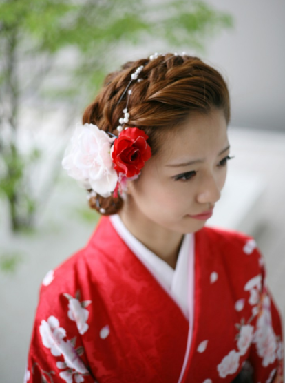 大人のためのまとめ髪スタイルもご紹介しましょう。お祭りで浴衣を着た大人の女性がビシっと髪型を決めるよりも、少しゆるふわ気味にセットすると大人の魅力がアップします。またこのスタイルはうなじのおくれ毛もきれいに見せてくれます。できればロングの方におすすめします。まず全体をカーラーかアイロンで巻いてボリュームを出してください。ゆるふわ感を出すためです。次にサイドを三つ編みにします。それらを中央でまとめていきます。そして大き目の三つ編みを作り束ねます。くるっとまとめてピンで固定します。サイドから流れた三つ編みのラインと大きい三つ編みが混ざりあって素敵に見えます。特にお団子はきっちりまとめず緩めに作り、襟足の方に作るとゆったりして素敵です。あまり作りこまないということが重要です。