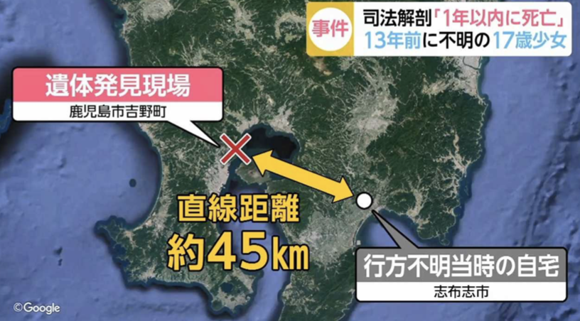 県警などによると、野添さんは同県志布志市に住んでおり、2006年4月、夜に家から出て行く物音を家族が聞いたのを最後に行方がわからなくなっていました。行方不明となった当時は県立高校3年生だったということです。遺体が見つかったのは、自宅のあった志布志市から直線距離でも約45km離れた鹿児島市内でした。さらに、遺体発見現場は、大通り沿いの山の中ではあるものの、地元の人でもなかなか立ち入ることはない場所だと近隣の住民は語りました。