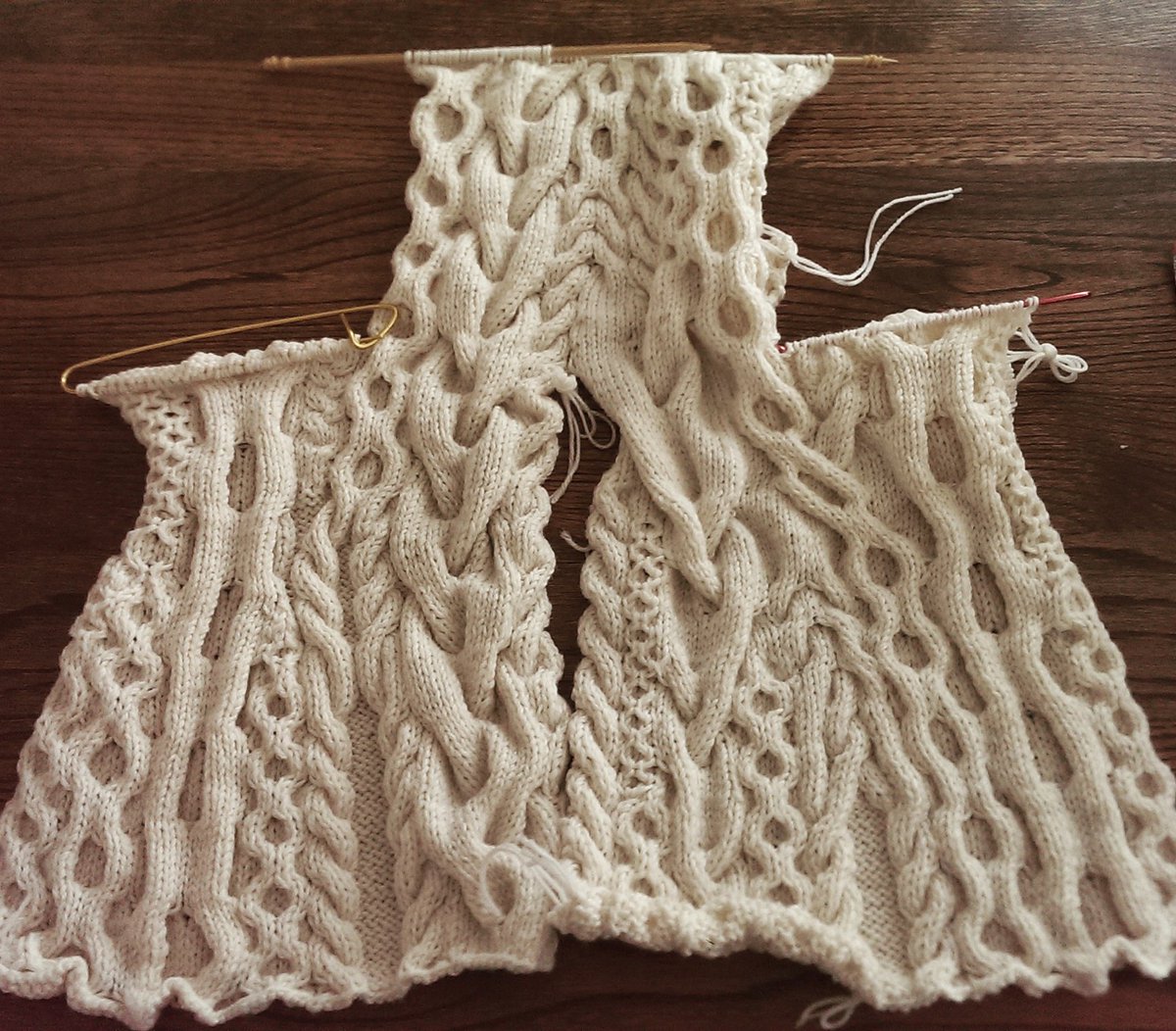 棒針編みは基本的に二本の編み棒を使って編んでいきます。かぎ針と違って一本の編み棒にいくつもの作り目を編み、上に伸ばしていくことが棒針の特徴です。例えばマフラーを編むときに20センチ程度の横幅がほしければ、作り目を20センチに合わせて作る形になります。マフラーに限らずセーターやバッグを編む場合でも作り目が自由に決められるので、既製品と違って思い通りのサイズに仕上げられることが編み物の醍醐味と言えます。
