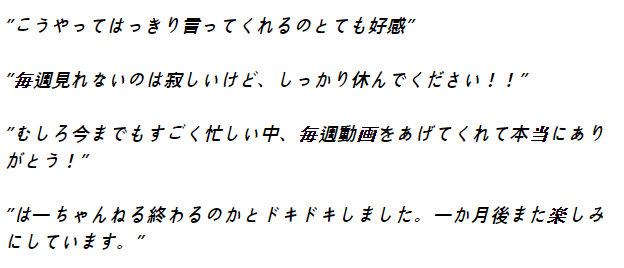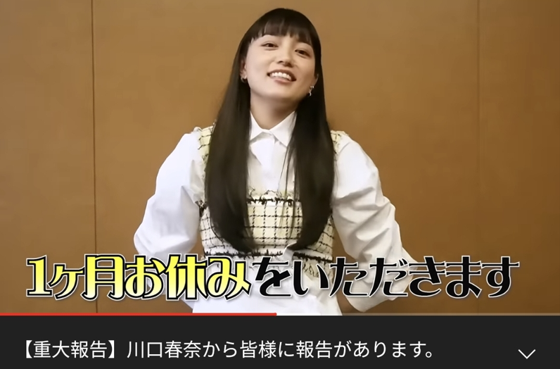 川口春奈さんは最後に「ちょっとだけお休みをいただきますが、このチャンネルは終わらないし、一か月後の活動に期待してほしいです。ポジティブな理由でお休みするので、また一か月後に会おうね!」と明るくコメントし締めくくっています。