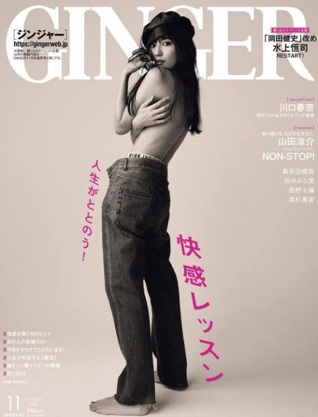 9月21日に全国発売#GINGER11月号 特別号の表紙には春奈が登場!」と紹介し、“上半身裸”×デニムスタイルで美ボディあらわな川口の表紙を公開しました。「セピアカラーのおしゃれで刺激的な今回の表紙は、春奈本人もお気に入り」と明かしています。