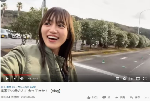 次に、帰省という川口さんの日常が映し出されています。一般人の駆け出しユーチューバーの帰省なら興味ない人が大半かもしれませんが、すでに女優として大活躍している川口さんなだけに、日常が逆に新鮮に写るでしょう。
