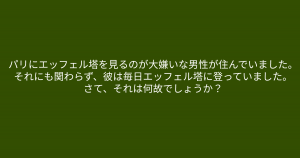 パリにエッフェル塔を見るのが大嫌いな男性が住んでいました。