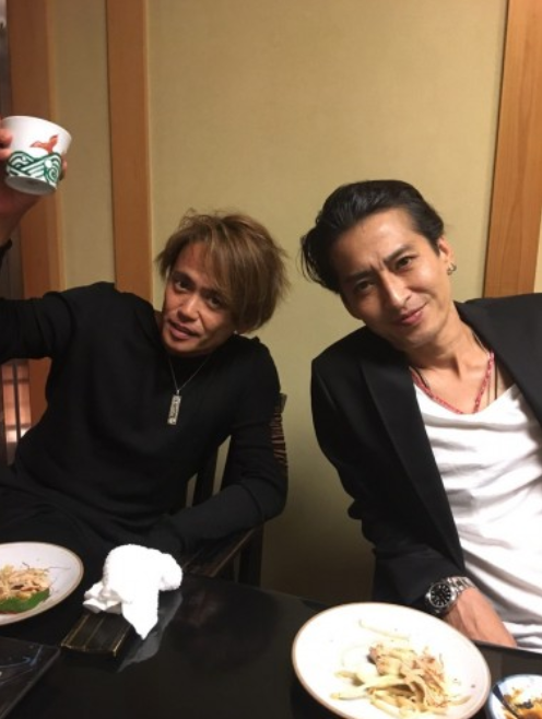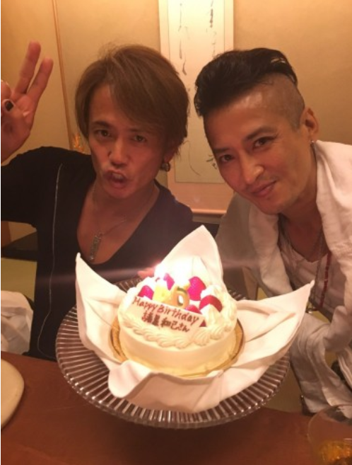 こちらは、元光GENJIのメンバーの大沢樹生との写真で、自分の誕生日を祝ってもらった時だと思われます。やはり頬がこけて痩せていますね。