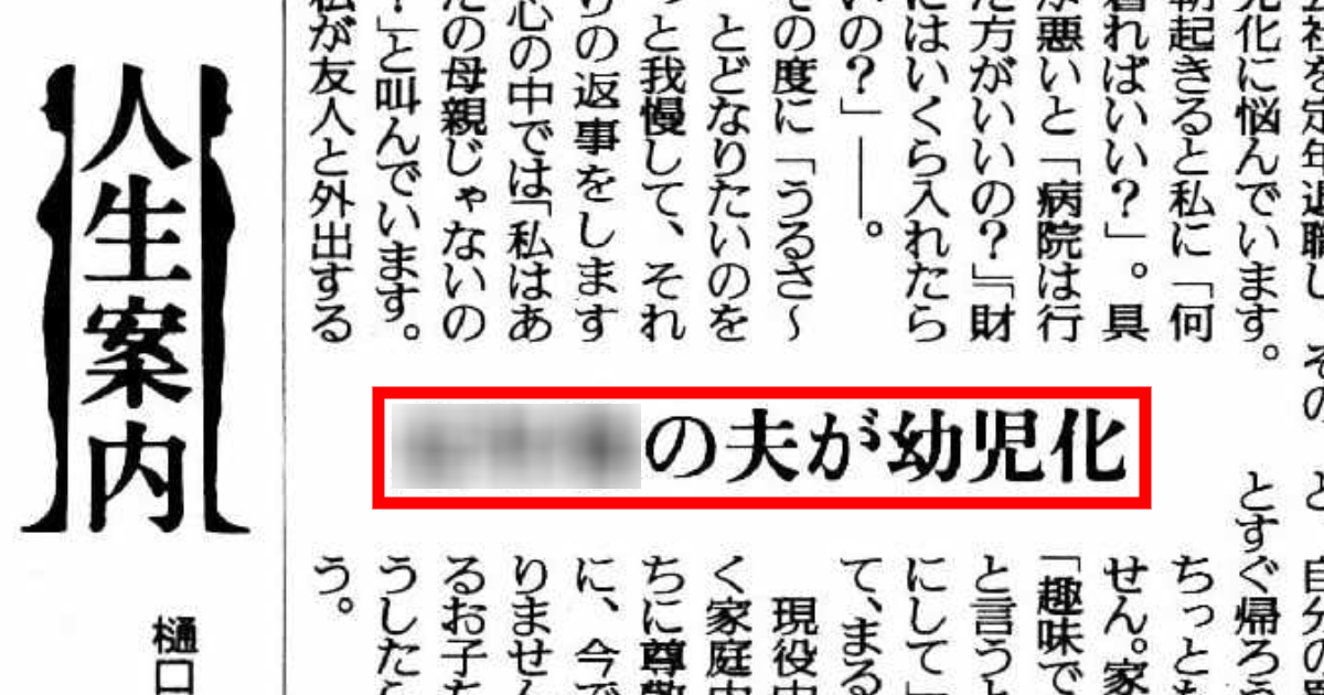 【全文あり】60代の主婦、「私は夫の母親じゃない!」悩みに悩むも… アドバイザーの一言に思わず納得の読者w