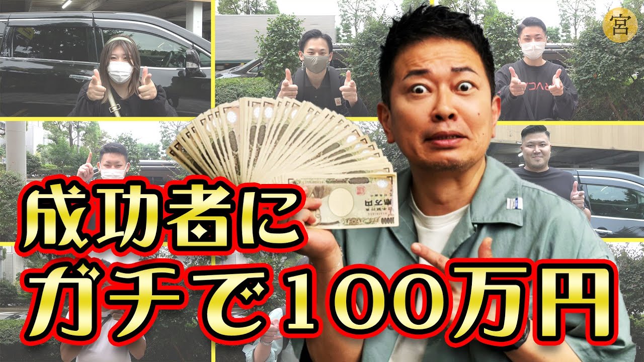 宮迫さんは挑戦者探しをスタッフに任せ、近くの車で待機しており、挑戦者が「宮迫です」ポーズをした直後に登場して、ポーズをジャッジしていくという流れになっています。動画冒頭で宮迫さんは、コロナ禍で不景気になった国民らのために100万円を準備したと説明。「私にお金はありませんが、なんとか頑張って…」と、100万円をカメラの前に出しました。