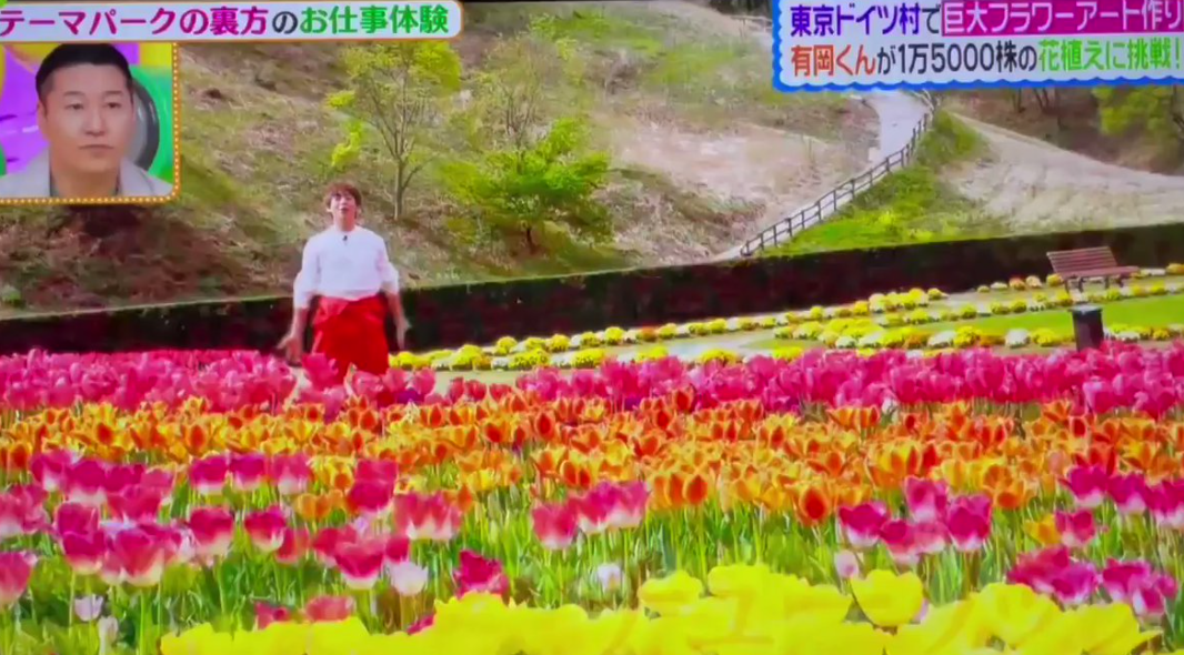 去る4月13日、いつものように 『ヒルナンデス!』に出演中の 南原さん。この日は、今年で 開園20周年を迎える『東京ドイツ村』が、記念企画として巨大フラワーアートを作る様子を VTRで紹介していました。番組では 火曜レギュラーの『Hey!Say!JUMP』有岡大貴さんを派遣し、コロナ禍で外部業者が呼べず ドイツ村は人手不足だとのことで、花の荷下ろしや土地のマーキングなどを手伝わせることに。